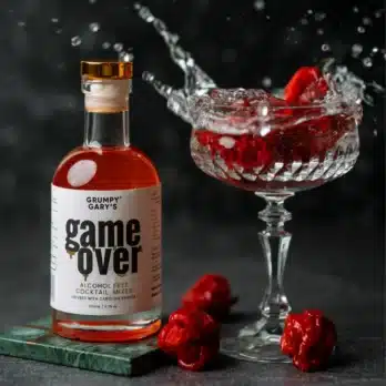 Get ready for a wild ride on the dragon’s back! Say hello to “Game Over,” the Carolina Reaper-infused, zero alcohol cocktail mixer. It’s sweet, tangy, and seriously spicy! Not just for cocktails, it’s perfect on ice cream, salads, baked fish, roast chicken, crispy bacon, and even in spicy lemonade. This is the most creative and unique product yet! Get ready to unleash your taste buds and spice up your life!